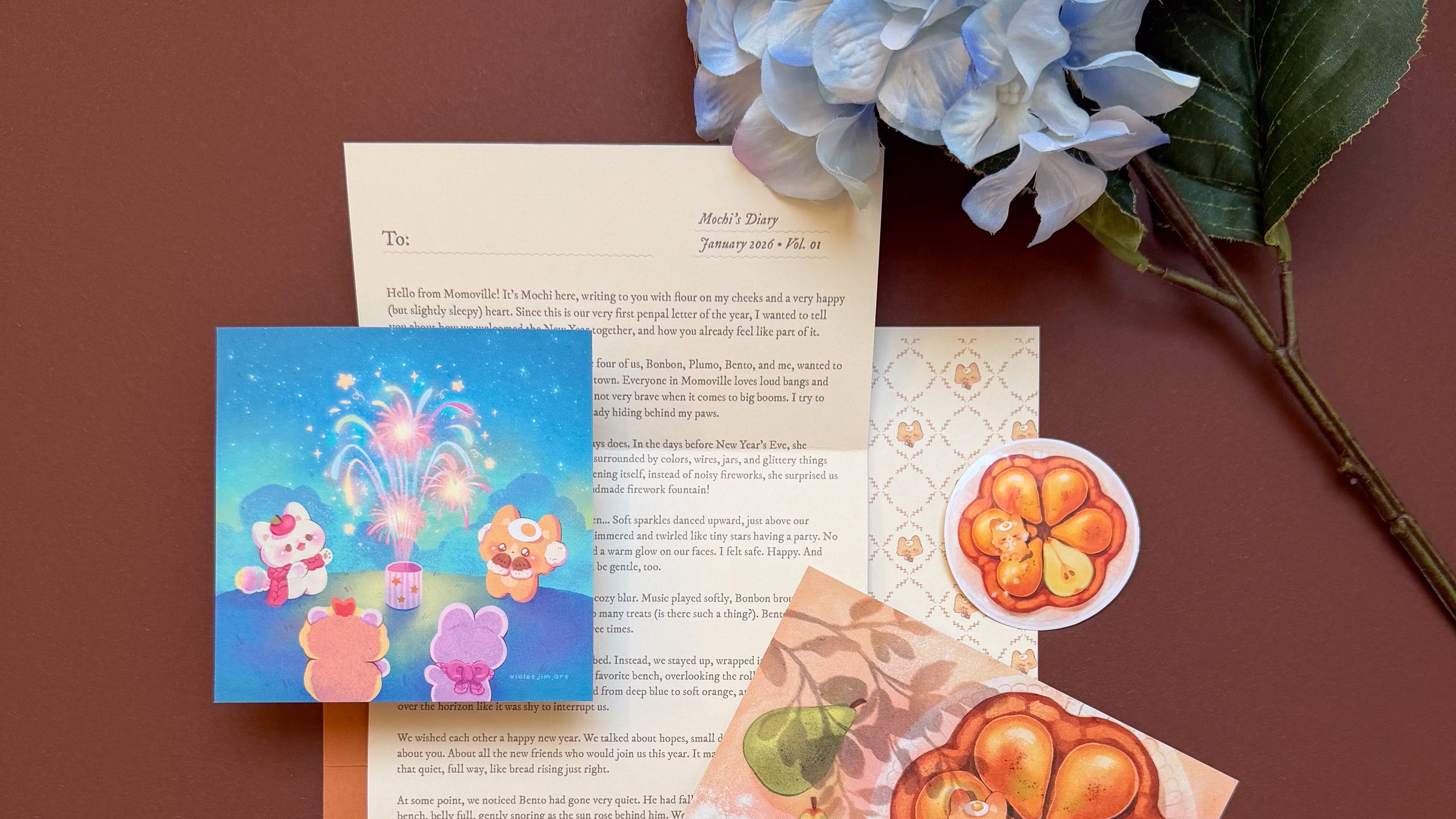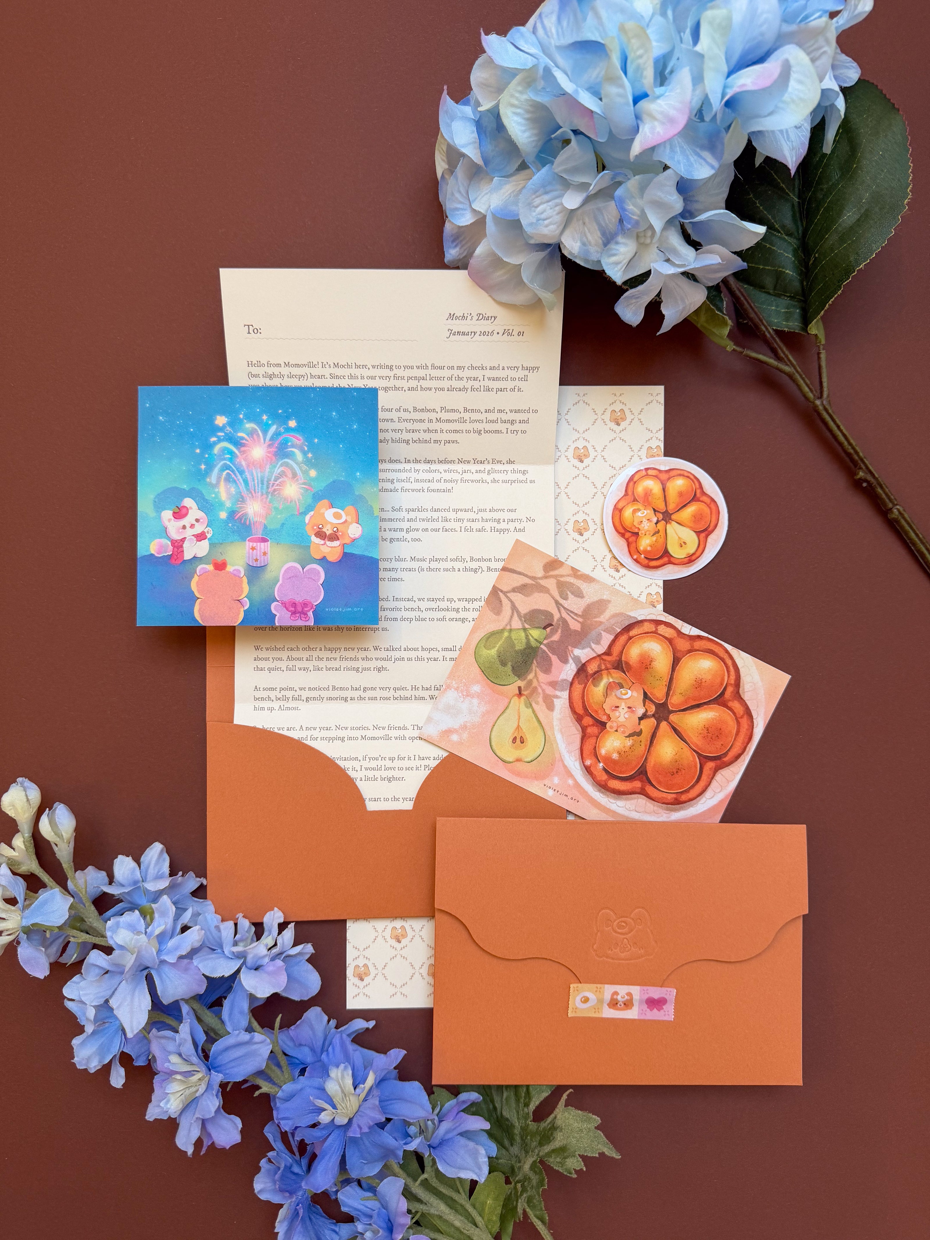 You have arrived at your destination! Explore a world of cuteness and joy with Mochi and his friends. Our collection features hand drawn illustrations meant to bring a smile to your face. We hope we can share with you that comforting and relaxing vibe and brighten your day!